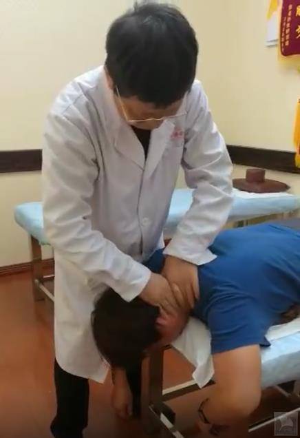 I used stretching and antagonizing methods on trapezius muscles, rotatory muscles, short and small muscles and ligament bursa between cranial vertebrae, pectoralis minor muscles and hyoid scapular muscle for five minutes, so as to achieve a new balance among the above mentioned parts.