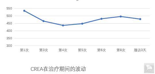 注:患者肌酐值与症状波动、好转均不呈线性关系(见下图)。