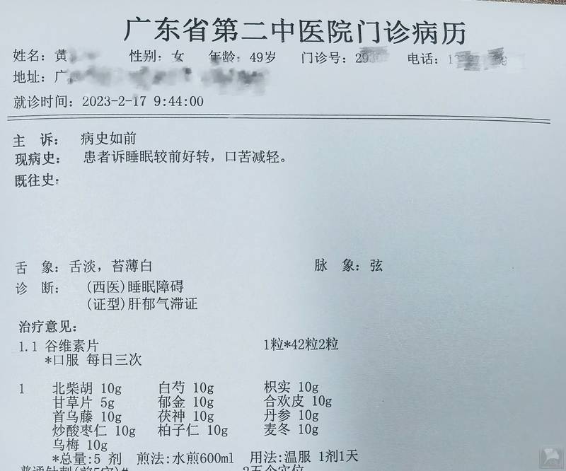患者,黄某某,女性,49岁,2023年2月13日初诊: