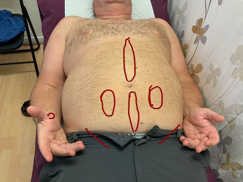 根据患者的腹征,按奇经八脉之任脉治疗