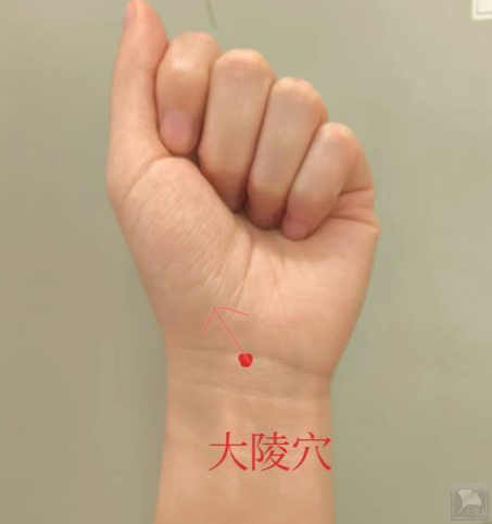 针大陵穴,先进行局部常规消毒,采用0.5mm×40mm岐黄针。以飞法进针,压到针柄向鱼际穴透刺,刺入皮下1寸,得气后,行合谷刺法,幅度为15°,摇动针柄出针,按压针孔1-2min
