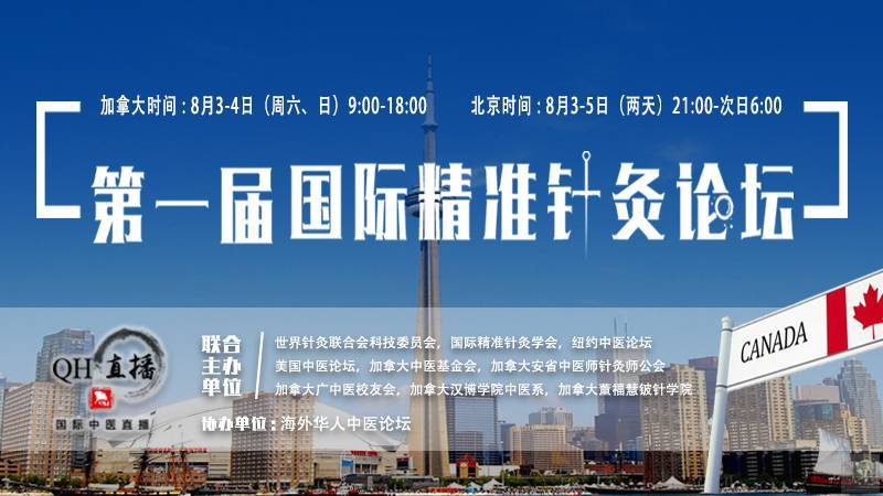 欢迎报名参加8月3号-4号在加拿大多伦多举行的“第一届国际精准针灸论坛”现场直播,点击此处即可报名
