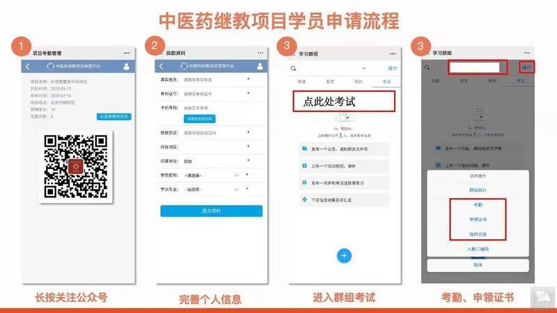 第一步:扫描学习群组二维码,申请加入学习群组;关注“中医药继教项目管理平台”公众号。