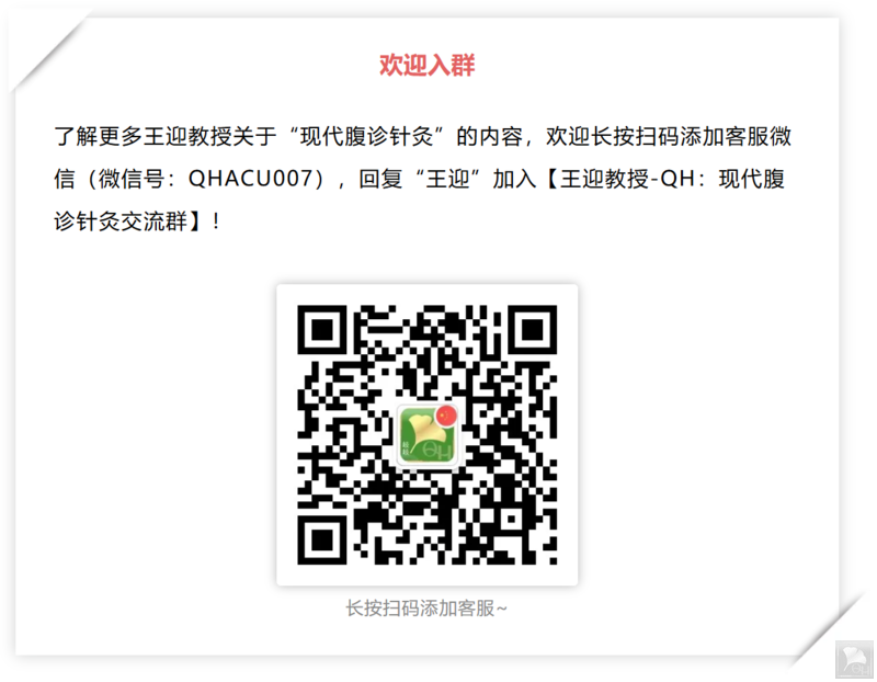 关于任脉腹诊治疗的详细介绍,之前王迎教授在QH岐黄网曾开展过相关的公益讲座,