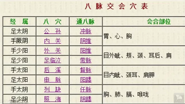 相信大家对于奇经八脉的治疗方法大部分都是来源于这个《八脉交会穴歌》。比如胃心胸的问题,取公孙、内关进行治疗;目外眦、颊、颈、耳后、肩的问题,则取阳维、带脉进行治疗;目内毗、颈耳、肩胛的问题,取后溪、申脉进行治疗;胸、肺、膈、喉咙的问题,就取列缺、照海进行治疗。我们都知道这些治疗方法,但是大家有没有留意到,在临床中有的时候使用内关、公孙这一组穴位治疗胃心胸的问题,有时效果很好,但是有时候效果不好,为什么呢?